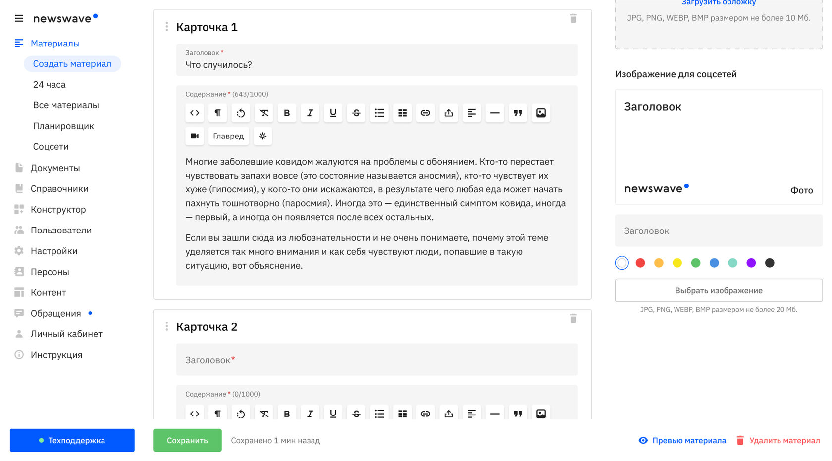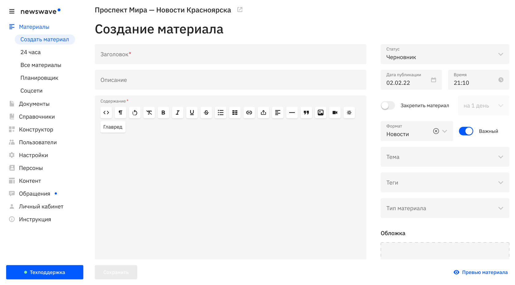 Платформа с самого начала разрабатывалась с учетом опыта наших коллег в журналистике, чтобы работа над материалами проходила максимально комфортно.